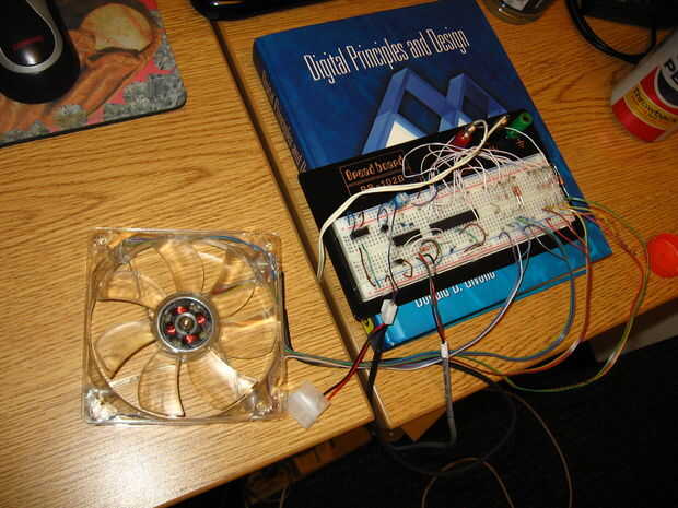 este es el circuito de control que diseñé para controlar los ventiladores de pared para el sistema de calefacción hidrónica en mi casa. El controlador sólo el ventilador enciende si realmente está fluyendo agua caliente para el registro de la pared.P