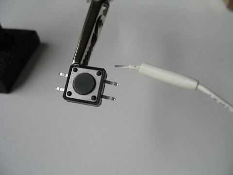Utilizando soldadura de encogimiento de calor dos alambres que botones después de aplanar los pasadores. Utilice una pistola de calor o el cañón de un soldador para reducir el encogimiento del calor. Hacer esto para cada botón