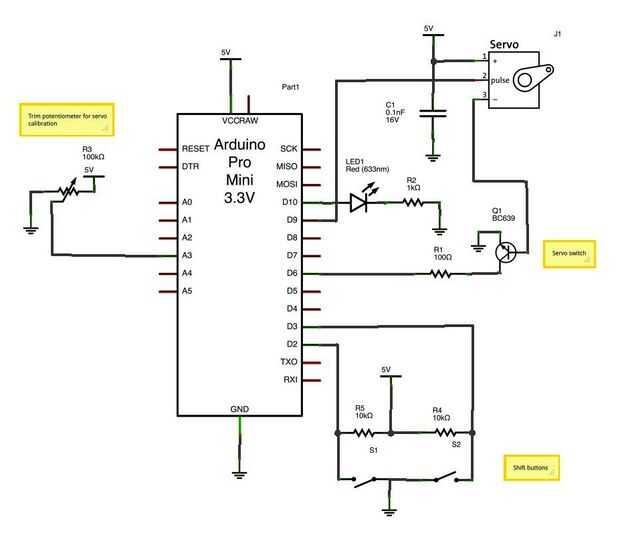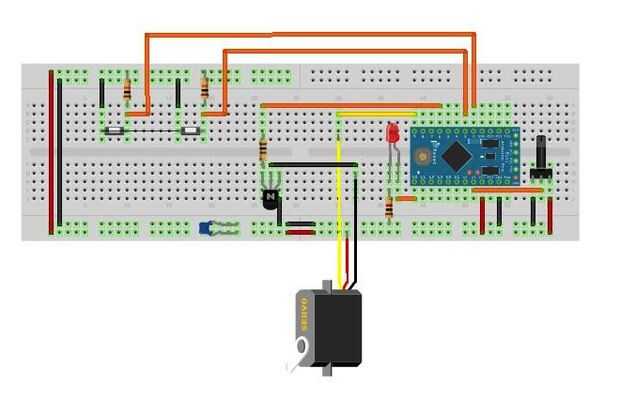 Conecte los cables a través de la parte posterior y colocar el jumper en las conexiones que unen a los botones y servo