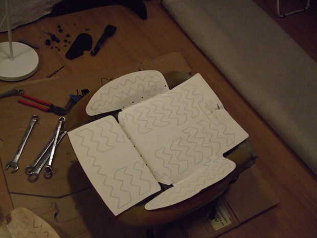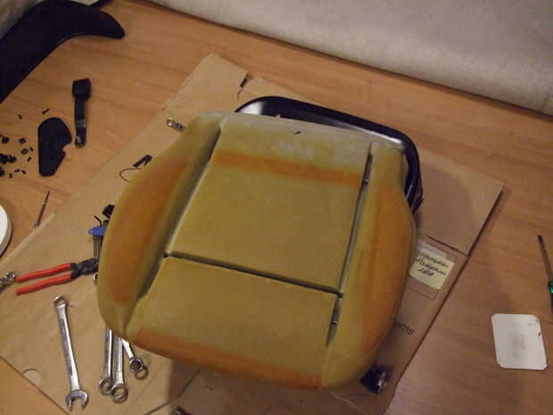 Empezar con el acolchado Coloque el nuevo elemento de calefacción en el acolchado, pero mantener el papel de protección de pegamento. Reemplazar los cables de acero de la tapicería