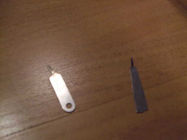 Después de pensar decidí sacrificar mi cuchilla de calibrador de espesor de 0,9 mm. La hoja de la galga fue molida hasta para montar en los partes movibles de la herramienta de desmontaje. Tenga en cuenta que se necesitan dos piezas.