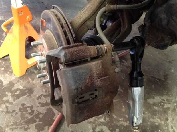 Retire pinza de freno. Si en cualquier momento encuentra un tornillo muy apretado o la tuerca, rociarlo con aceite penetrante y dejar reposar un poco.