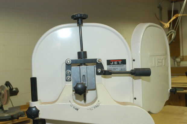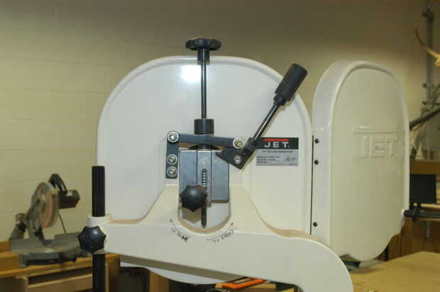 Muchas sierras no tienen palanca de liberación rápida. En ese caso debe activar la tensión de mando vertical larga con contador del reloj bajar la rueda superior y soltar la hoja.