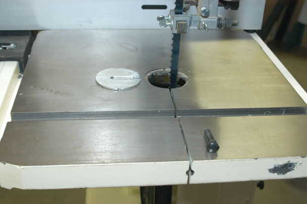 Como con todas las herramientas, apague la sierra y desconecte de la energía. Abra las cubiertas de la rueda. Retire el protector de disco (imágenes uno, dos, tres). La Sierra es chino así que todo es métrico. Tornillos más implicados en el cambio de la hoja tiene cabeza hexagonal de 10mm o tornillos de mariposa. Quite el pasador de mesa & placa de garganta (imagen 4). El pin de la mesa es una presión así lo saca con un par de pinzas. Ponga a un lado.