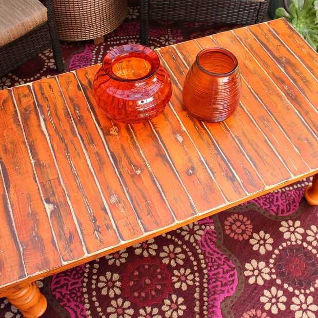 Dar una mesa de café de los años 70 un cambio de imagen rústica con listones de madera y la pintura! Una buena manera de reemplazar una mesa que está desgastada, dañado y rayados.