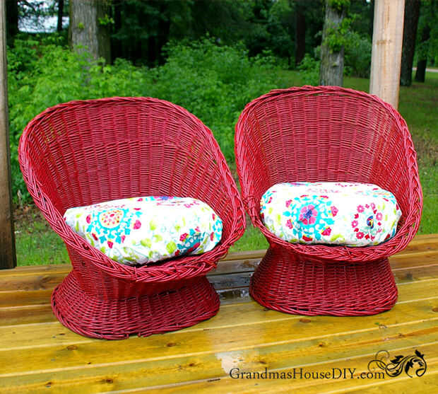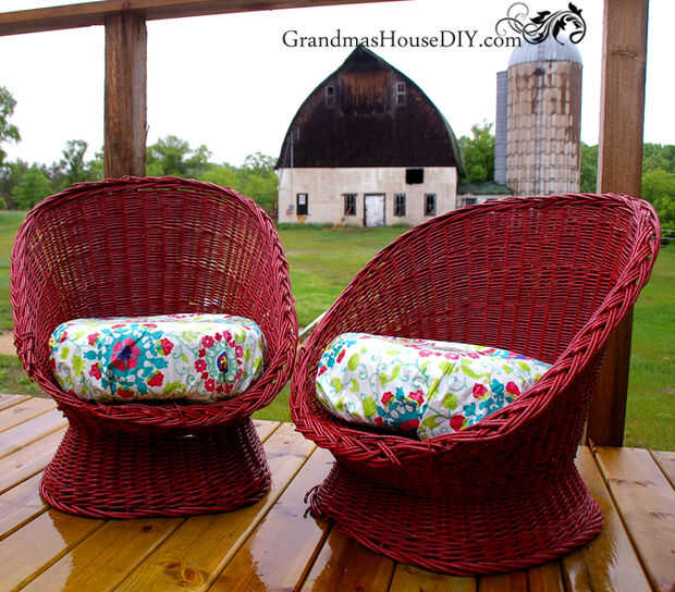 Yo tuve uno último paño de tabla al aire libre a la izquierda de mis sillas de caza de ganso al proyecto de tumbonas de sol que simplemente envuelve los cojines grandes en y les debajo había atado con hilo de enfardar. Estas sillitas de mimbre son increíblemente cómodas! Concedido que mi esposo me dice que están un poco bajos a la tierra para él, bien yo no soy una persona muy grande o muy alto por lo que son bien para mí. Que tipo de caída y "hundirse" en ellos, son unos sillones de relajación real aquí!