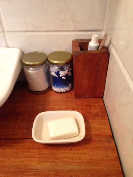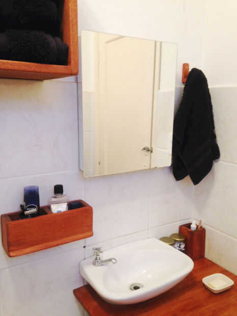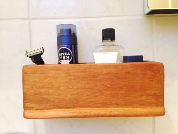 acaba de agregar algunos detalles. Un lugar para mi kit de afeitado y para mi cepillo de dientes. Todos hechos de trozos de madera.