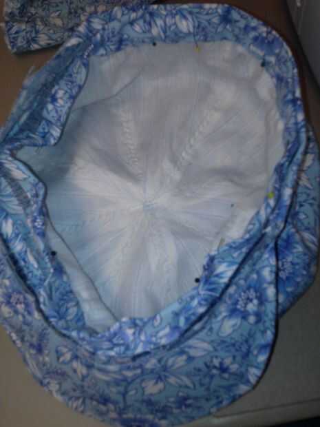La parte delantera de la corona del sombrero será en el centro de una de las secciones entre 2 de las costuras. Doblar una de las bandas de sombrero de tela por la mitad y ubicar el centro. Este PIN al centro frontal de la sección de la corona, derecho contra derecho juntos. Prender la otra tela sombrero banda en el interior del sombrero, mal lado hacia fuera. Pasador de la parte posterior las costuras de la cinta del sombrero juntos. Repita con la alineación de la banda de sombrero. Compruebe que se ajusta alrededor de la corona bien. Coser las costuras detrás de la banda de sombrero y repita con la alineación de la banda de sombrero. Coser por todo el filo del sombrero con margen de costura de 1/2". Doble banda de sombrero hacia abajo y también sombrero de la guarnición. Coloque la tira de mezclilla dentro de la banda de sombrero. Corte extra. Doblar la banda de sombrero hacia abajo y bajo que incluye el interfaz del dril de algodón. PIN. Baje el forro de la banda de sombrero y borde de vuelta bajo 1/2", localice la parte delantera del sombrero por encontrar la costura posterior de la banda de sombrero y la parte delantera del sombrero es el opuesto a ese punto. Colocar un alfiler en el centro delantero. Coloque la costura del borde del sombrero entre la banda de sombrero y el sombrero banda forro, puntos centrales de coincidencia.