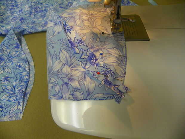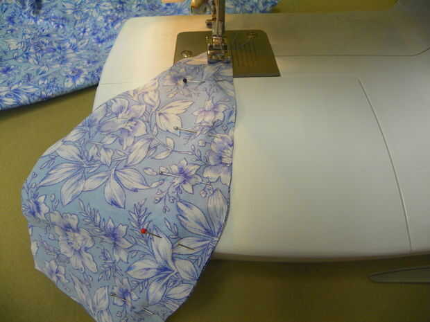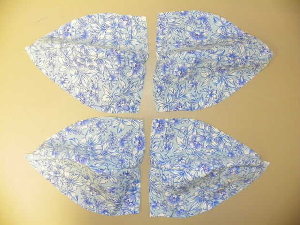 Pin 2 secciones derecho lados juntos. Coser por un lado con el margen de costura de 1/4". De lado y repita el procedimiento con las otras 6 secciones. Pulse las costuras abiertas. Ahora tienes 4 secciones. PIN y coser uno al otro a los lados. Hacer lo mismo con las 2 restantes. Ahora tienes 2 secciones de 4 piezas. Coincidir la pionts donde estará la parte superior del sombrero y el pin. Unir estas 2 secciones, crear la corona del sombrero. Pulse las costuras abiertas. Puntada de tope 1/8" a cada lado de las costuras.