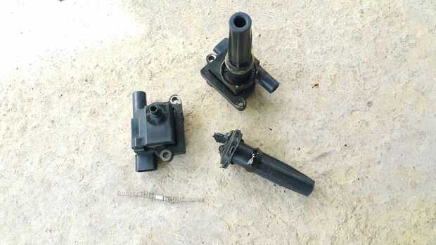 Los paquetes de bobina están en manos de cuatro pernos de 10mm. Los conectores eléctricos que desconectarán el motor. Como se puede ver los paquetes de bobina y los cables de bujías están en mal estado. Estos serán reemplazados.