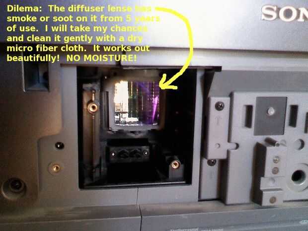 No se supone que toque cualquiera de la óptica en la unidad. Sin embargo, si pongo una lámpara nueva en y deja explosión a través de esa basura mi imagen y brillo va a sufrir. Pensé que era mejor tomar una oportunidad con un paño de microfibra seco y frotar limpiar muy suavemente. Esto era una buena opción. Limpian muy bien y no tengo anomalías extrañas en la fotografía.