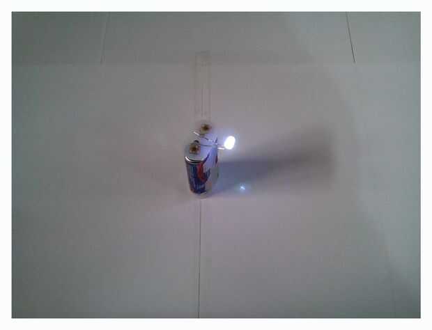 ahora conectar el LED a los terminales de la batería y doblar hacia arriba el LED