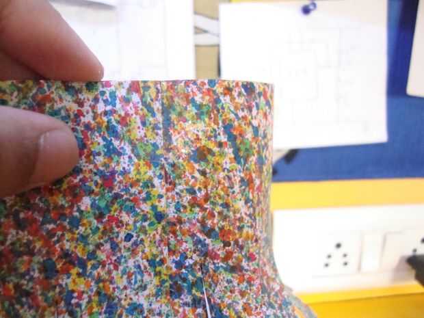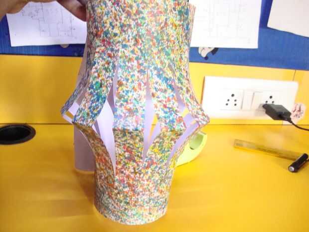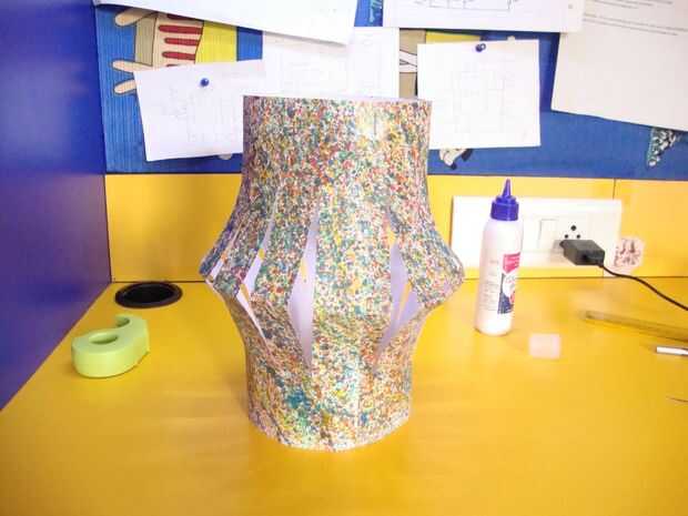 Por último, doblar la lámpara en forma de un cilindro. Pegar los extremos con pegamento y cinta. Ahora puede ver la belleza de la lámpara!
