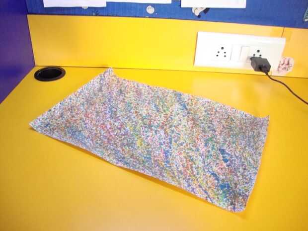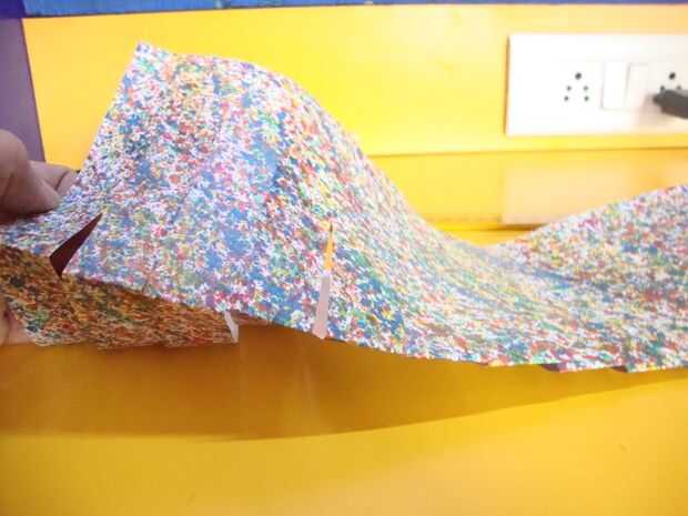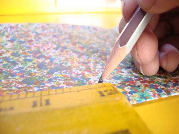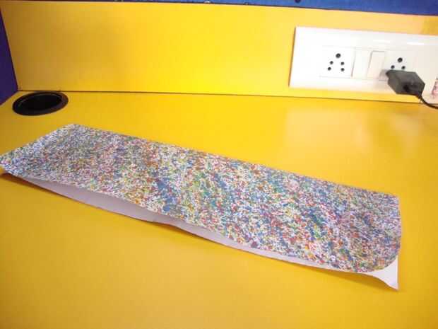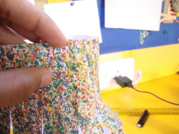 Después de pintar y decorar la hoja, es tiempo para hacer la lámpara y su forma de dar. Para esto, primero doblar la hoja en la mitad de su amplitud. Luego, marque los cortes dejando espacio de 1 pulgada a lo largo de la hoja. Corte las porciones marcadas hasta más de la mitad de la hoja. En abrirlo, usted encontrará los cortes de bombear hacia fuera.