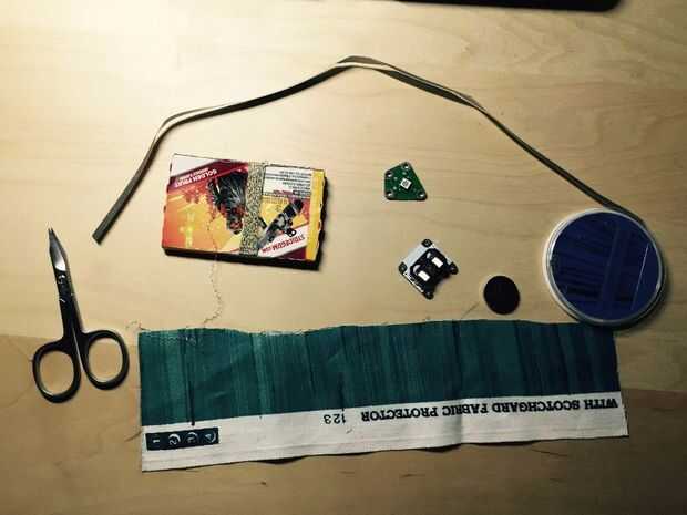 Hay las cosas que necesitamos para preparar. Banda (50 centímetros) de la medalla, medalla cable (más de 5 metros), batería, textil que te gusta, tijeras, poca luz eléctrica y aguja.