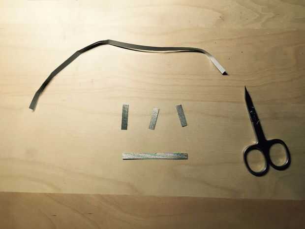 Cortamos tres mismas bandas corta y una larga banda. La longitud debe ajustarse al tamaño de la industria textil, haciéndolos fáciles de poner en él.