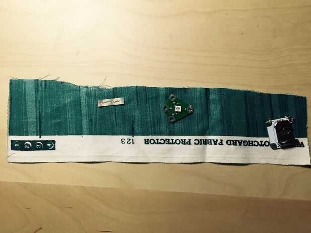 Luego, utilizamos un cable para conectar polo de G positivo con una banda corta, fijación en el textil.