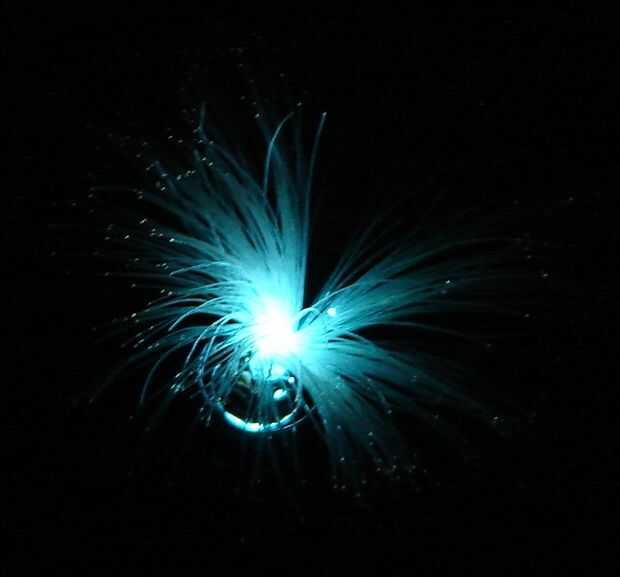 El hilo de nylon (sedal) no tiene absolutamente el mismo efecto como fibra óptica real. Hay más degradación de la señal luminosa a lo largo de su longitud por lo que no tiene el mismo punto brillante en el extremo de la fibra. Aunque la difusión de la luz a lo largo de su longitud todavía se ve poco aseada.