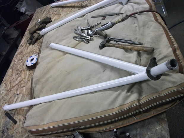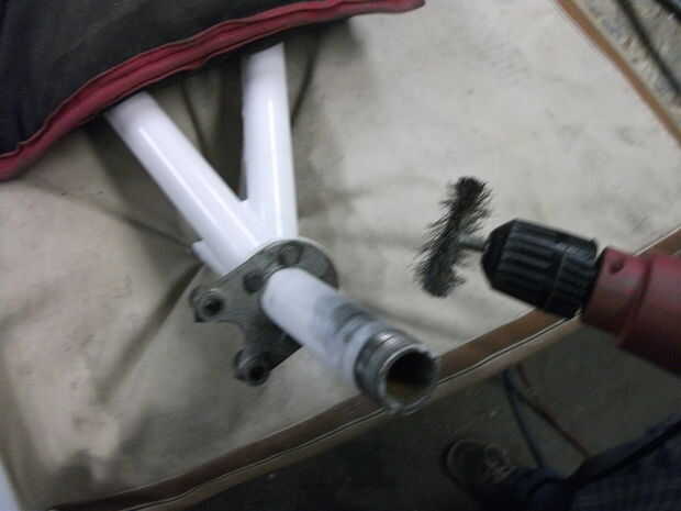 En nuestro caso, las ruedas no deslice sobre los árboles porque están pintadas. Curioso. Nos de arena de toda la pintura usando la rueda del alambre y envolver luego papel de lija alrededor de conseguir sobre todo todo apagado, entonces las ruedas en. Con un poco lubricante y un mazo de goma, estamos en el negocio.