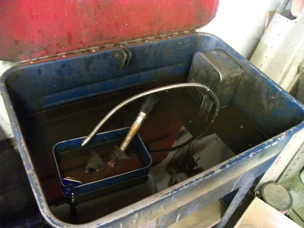 Vamos a dar todas las partes una sola vez por el varsol, luego soplar con la manguera de aire.