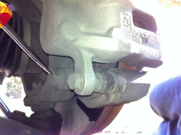 Localizar los dos tornillos que sujetan la pinza en su sitio. Vas a necesitar usar alguna grasa de codo para romper estos sueltos, que el fabricante utiliza sellador para asegurarse de que estos estancia puesto. Una vez que están sueltos, el conductor de impacto hará sacarlos más rápido. Limpie las roscas y apartarlas.