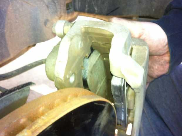 Una vez las pastillas en su lugar, vas a tener que abrir la distancia entre las pastillas un poco más. ¿Recuerde que el precio de 1 x 2 de madera? Se usa para quitar aparte como van a ir. No use el destornillador o pueden dañar las pastillas. Cuando hay suficiente espacio entre los electrodos, la pinza se deslizará en. Cuando las pinzas en el lugar, poner armario del hilo de rosca en los pernos y apriételos a las especificaciones del fabricante.