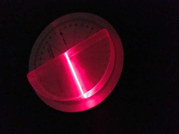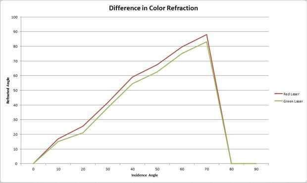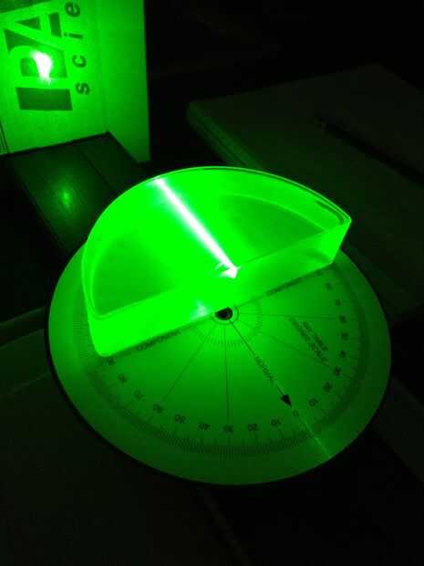La incertidumbre de este cálculo es de +/-.5 porque el transportador que estábamos usando sólo fue capaz de medir el grado más cercano, además cuando la luz recorrió la muestra de gelatina, se convirtió en menos concentrada que medir el ángulo de refracción más difícil.