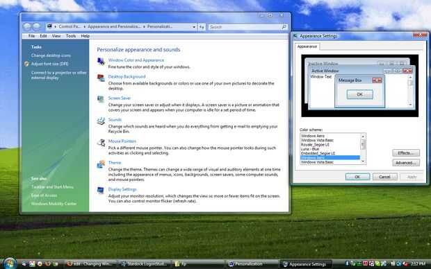 Ahora debe tener un escritorio similar a la de la segunda foto. La primera imagen muestra el escritorio antes de aplicar el tema.