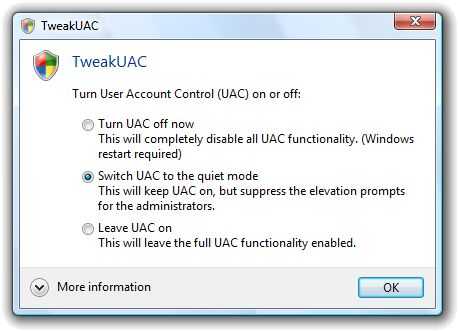 Control de cuentas de usuario puede ser una de las características más molestas de Vista. Usando un programa llamado Tweak UAC, puede elegir el nivel de molestia.