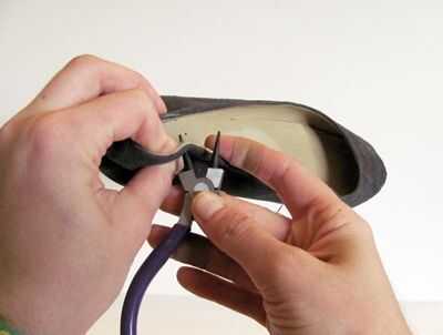Probar los zapatos para encontrar un lugar en la parte posterior de cada lado donde un anillo del salto no frotará su tobillo. Mina fue en los boquetes pequeños entre el flaco la parte trasera de mi pie y el zapato. Marque los puntos si se desea, entonces [cuidadosamente!] un agujero pequeño con un pincho, Taladro broca o unos alicates de joyería. Si estás usando zapatos de cuero, un taladro puede ser la mejor opción. No apuñalar a sí mismo como yo lo hice!
