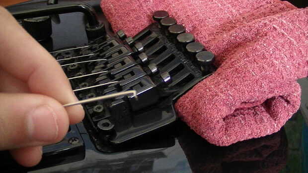 Mientras estás allí, puede establecer el sintonizador fino en su posición media, por lo que tendrá un mayor alcance para afinar su guitarra con el sintonizador fino después. Ahora que sus cadenas es libre, puedes rodarla para arriba y tal vez mantenerlo para otro proyecto como lo hace el gato de biblioteca: pulsera de cuerda de guitarra -