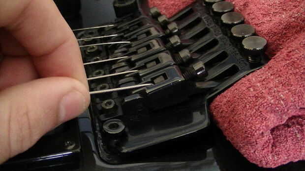 Este instructable muestra cómo afinar una guitarra con un trémolo de Floyd Rose. Estoy usando una Kramer Striker 211.Paso 1: La tuercaComo se muestra en la imagen, la tuerca es especial. En primer lugar, tenemos que desbloquear la tuerca utilizando u