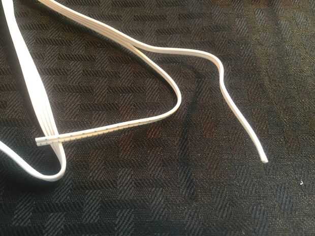 2) después del final ha sido quitado split los 4 cables por la mitad como se muestra en las imágenes y dividirlas todos modo de th hasta golpeó la parte delantera del halo.