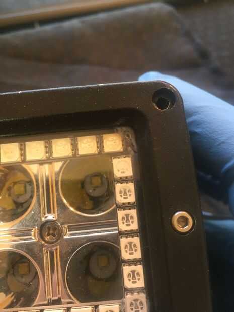 Aplicar el pegamento en cualquiera de las 2 esquinas opuestas del anillo del halo, en la luz sí mismo.