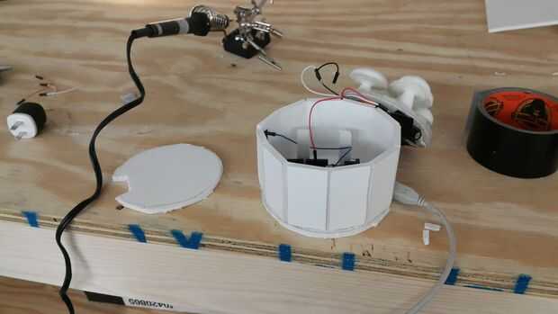 1) cortar las piezas como se muestra en la primera foto (4 soportes de apoyo 3.5-4 cm, una tira de 6 cm alto * tiene que ser lo suficientemente largos para poder ir alrededor de los 2 círculos que cortamos 2 piezas de círculo ligeramente más grandes que la base de las setas, uno de los círculos ha un poco corte lejos para permitir que los cables pasar a través)