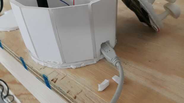 Dependiendo de donde coloques el Arduino, corte un pequeño agujero en la tira para permitir que el cable USB pasar a través. Para permitir que la tira doblar y doblar como se muestra en el pcitures, hice cortes poco profundos eran una sola regla amplia en un lado del cartón pluma.