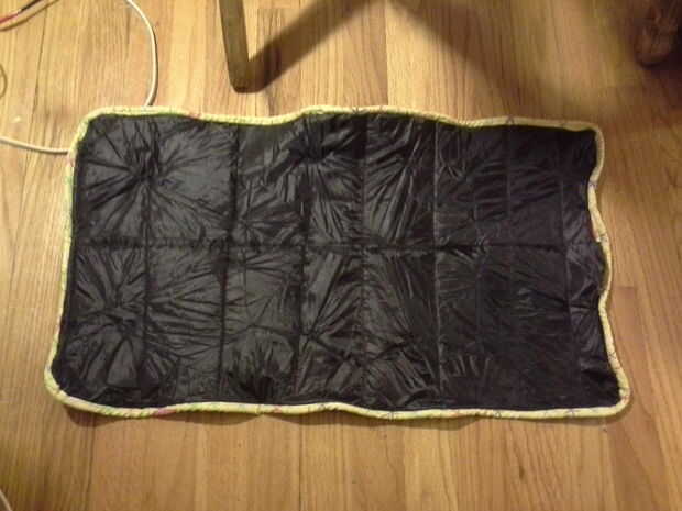 Acabado el tapete por el cierre de la abertura que había insertado la toalla en.