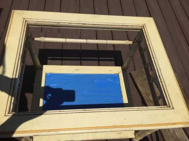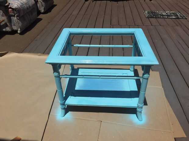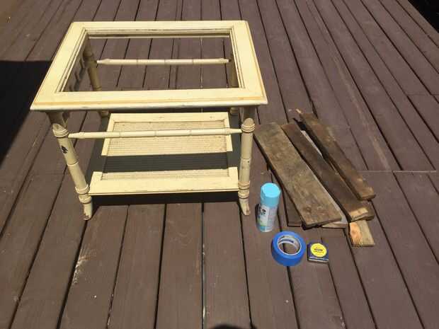 Una vez que se recogen sus materiales necesarios, puede seguir adelante y comenzar. Para mi caso, había grabado la parte inferior de la tabla con cinta de pintor que te pinte un color diferente más adelante. Entonces, me fui adelante y fondo aerosol pintado la mesa con su primera capa. Mientras yo esperaba para que la pintura se seque me fui a trabajar sobre la mesa.