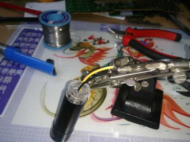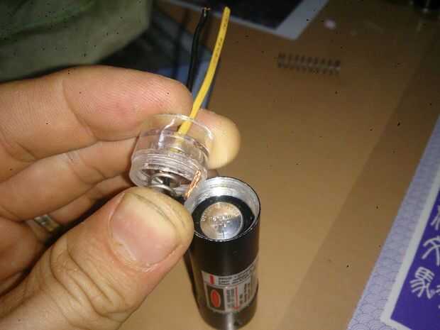 Foto 3: Colocar otro cable (negro) en la rosca de la tapa para que toque el cuerpo del metal del laser cuando nos ponga la tapa en.