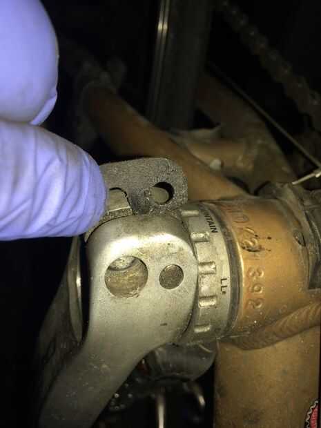 ** Tome nota que el separador pequeño es colocado entre la división en la manivela donde los pernos son **
