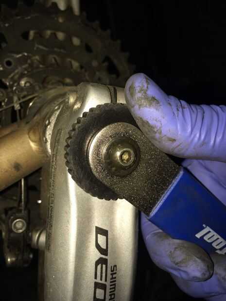 3. usando el BBT-9 uso de la herramienta al final de la rueda pequeña y quitar la tuerca que está en el extremo del huso