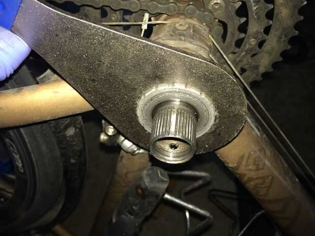 1. utilizando la herramienta BBT-9 sobre la tuerca gris gire a la izquierda en el lado no motriz para aflojar