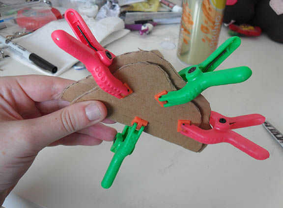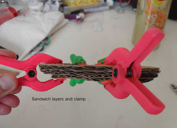 Presione en su lugar enla parte inferior de la capa media. Abrazadera para secar.