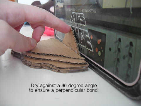 Para asegurar una adhesión perpendicular, desea apoyar a la madre contra un objeto plano como un libro (o cerdos en espacio lonchera).