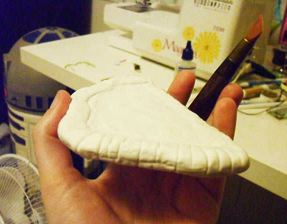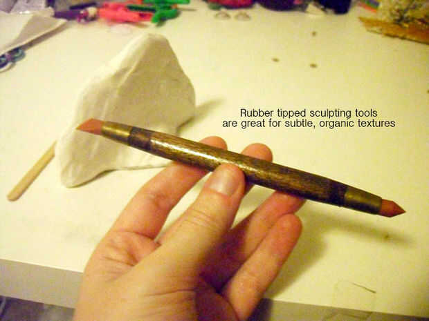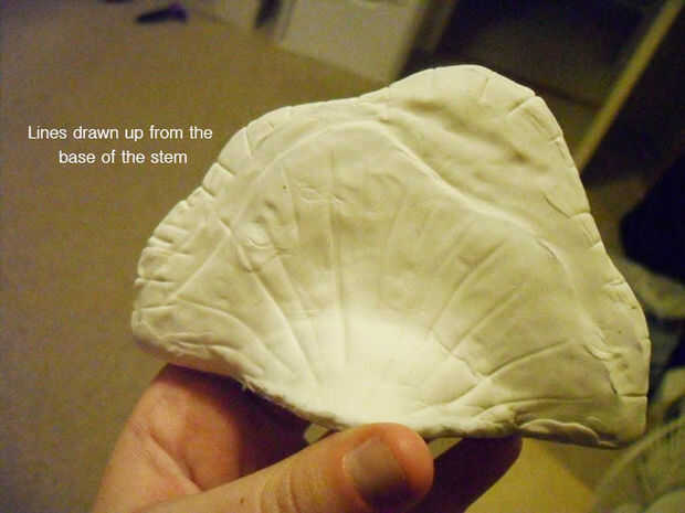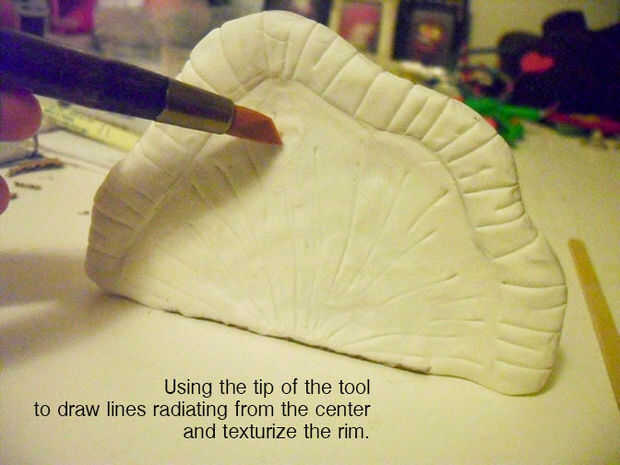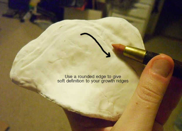 Utilizar una goma con punta de herramienta sculpting líneas definidas de aspecto orgánicas y crestas en su seta. Si no tienes herramientas, palillos de esculpir y hacen palitos--sólo hará más líneas.