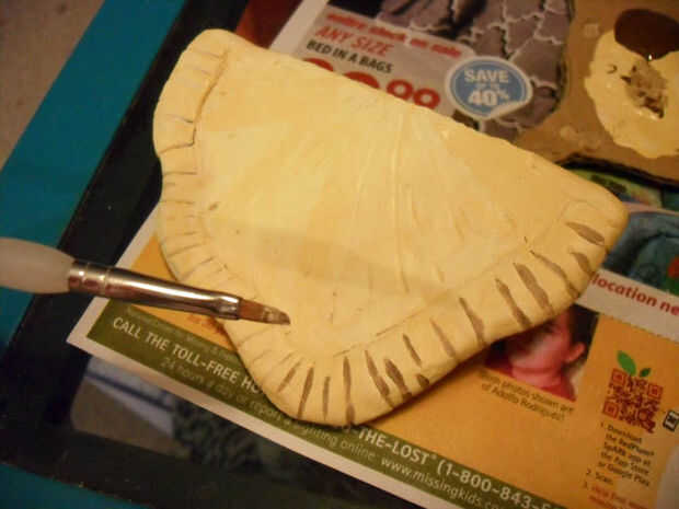 Aplicar el color base con un pincel de esponja tipo, casi seco cepillar el color a través de la superficie. Esta técnica evitará pintura puesta en común en todas esas líneas agradables que usted tallada.