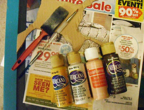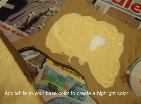 Poner periódico para proteger la superficie de trabajo. he utilizado un trozo de mi cartón sobrante como una paleta para mezclar mis colores de encargo.