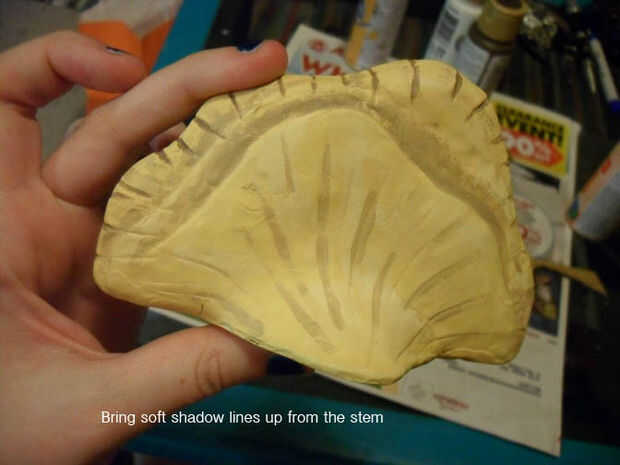 Mirada a la naturaleza de su inspiración de seta color. Mezclé un natural color amarillo / de color caqui para imitar las setas de árbol selva que tenía en mente desde el principio.