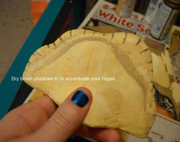 Agregar otro chorro de blanco a tu color base para crear un color de resaltado. DAB esta color encima de la plataforma donde el hongo naturalmente sería más ligero.