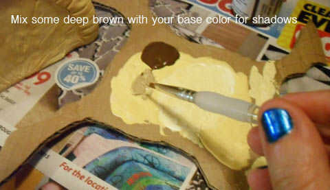 Añadir un marrón oscuro (yo usé Umber quemado) a tu color base para crear un color de sombra.